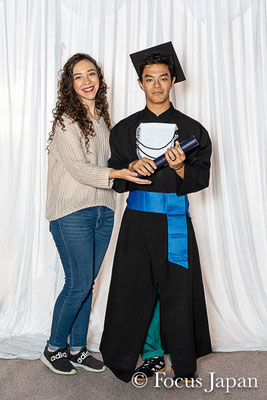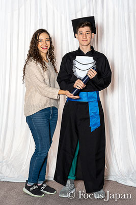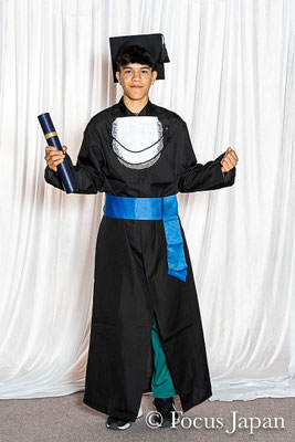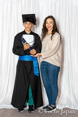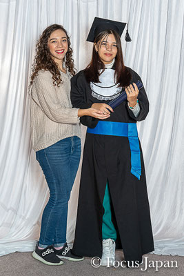 Fotos de "beca" e fotos informais dos formandos tomadas na escola no dia 27 de outubro.